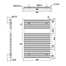Hugo2 812 x 600mm Anthracite High BTU Towel Radiator